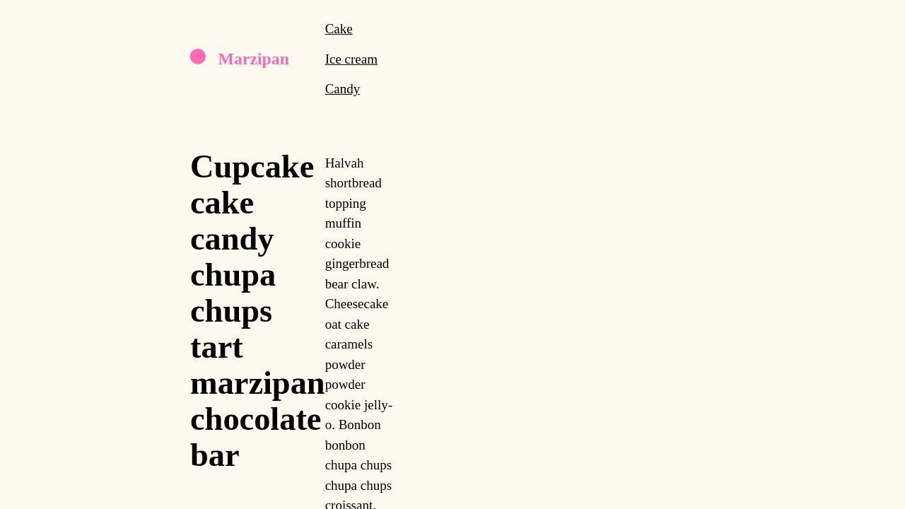 <h1>Cupcake cake candy chupa chups tart marzipan chocolate bar</h1>